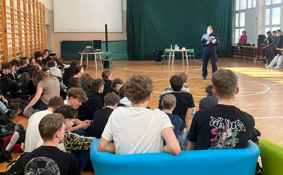 Policjantki zajmujące się profilaktyką społeczną odwiedziły uczniów z IV Liceum im. Adama Mickiewicza. Rozmowa dotyczyła perspektyw, jakie daje służba w Policji. Starliśmy się przekonać młodych ludzi, że oni również mogą wspólnie z nami każdego dnia „pomagać i chronić”.