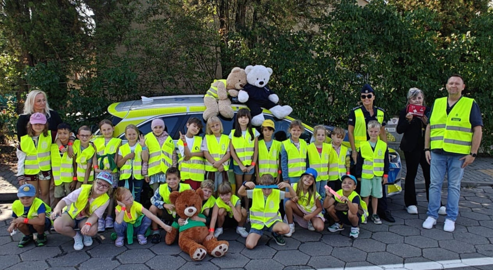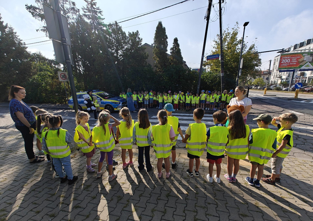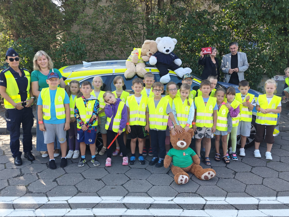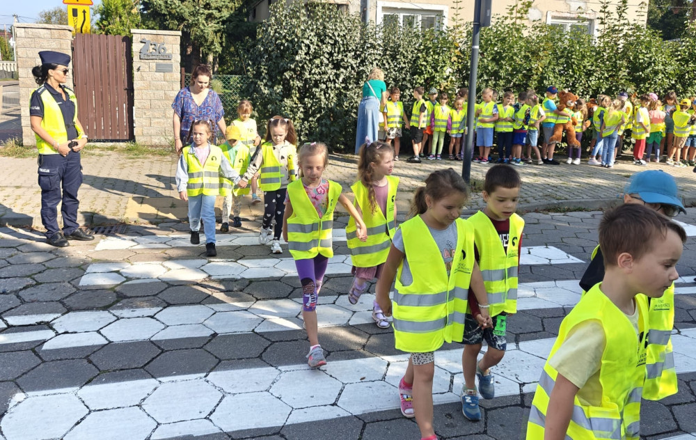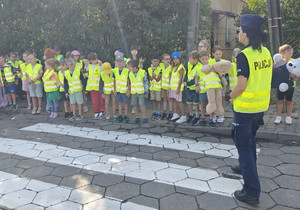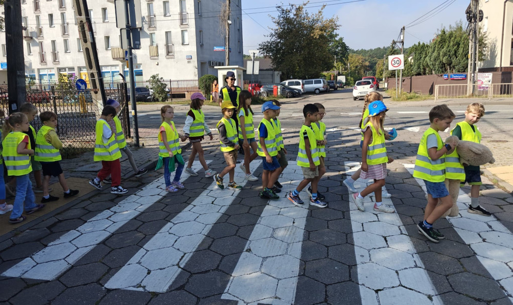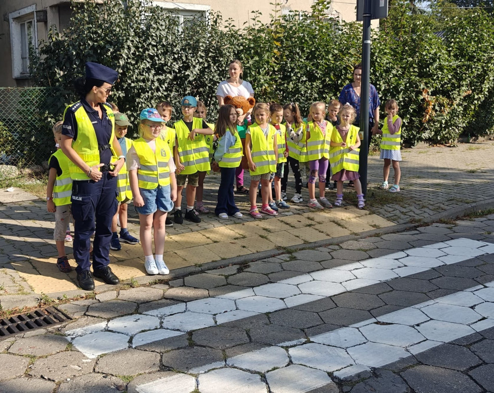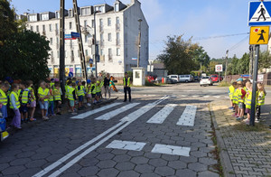 Taka lekcja z policjantem w terenie to nie tylko wykład, ale i praktyka. Uczniowie pod opieką funkcjonariuszy oraz przedstawicieli delegatury SCB i nauczycieli uczyli się, jak prawidłowo i bezpiecznie przechodzić przez jezdnię. Na zakończenie spotkania wszystkie maluchy otrzymały elementy odblaskowe.
