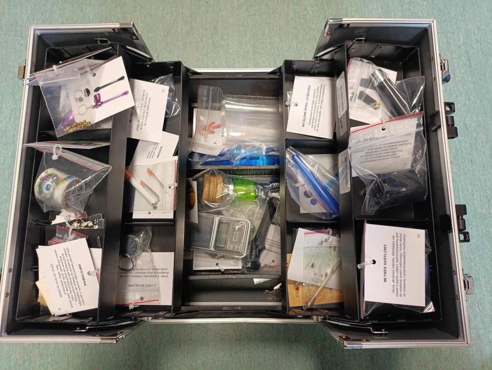 Dla zobrazowania przekazanej wiedzy policjanci zaprezentowali walizkę edukacyjną.