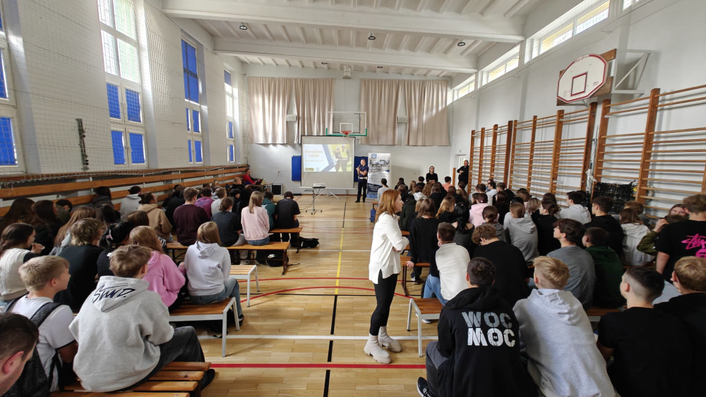 W LI Liceum Ogólnokształcącym przy ulicy Kadrowej odbyło się spotkanie w formie apelu, w którym udział wzięli wszyscy uczniowie. Gośćmi, a jednocześnie głównymi prowadzącymi, byli policjanci, dzielnicowi z rembertowskiego komisariatu, funkcjonariusz z Wydziału Ruchu Drogowego Komendy Stołecznej Policji i przedstawiciele delegatury SCB.