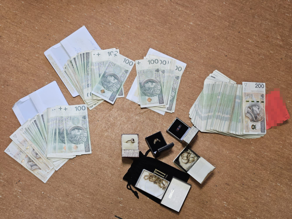 Kryminalni zabezpieczyli obrączkę, pierścionki, łańcuszek, kolczyki, a także prawie 40 tysięcy złotych w gotówce. Łączna wartość łupu wyniosła ponad 56 tysięcy złotych.
