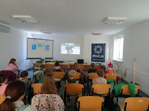 Pokazały jak wygląda praca policjantów, zaprezentowały wyposażenie i sprzęt funkcjonariuszy. Uświadomiły dzieciom jak ważne jat przestrzeganie podstawowych zasad bezpieczeństwa, jak o swoje bezpieczeństwo możemy sami zadbać i jak należy postępować, by nikomu nie stało się nic złego. Dodatkowo dzieci wspólnie z policjantkami przypomniały sobie między innymi, numery alarmowe i zasady wzywania pomocy.