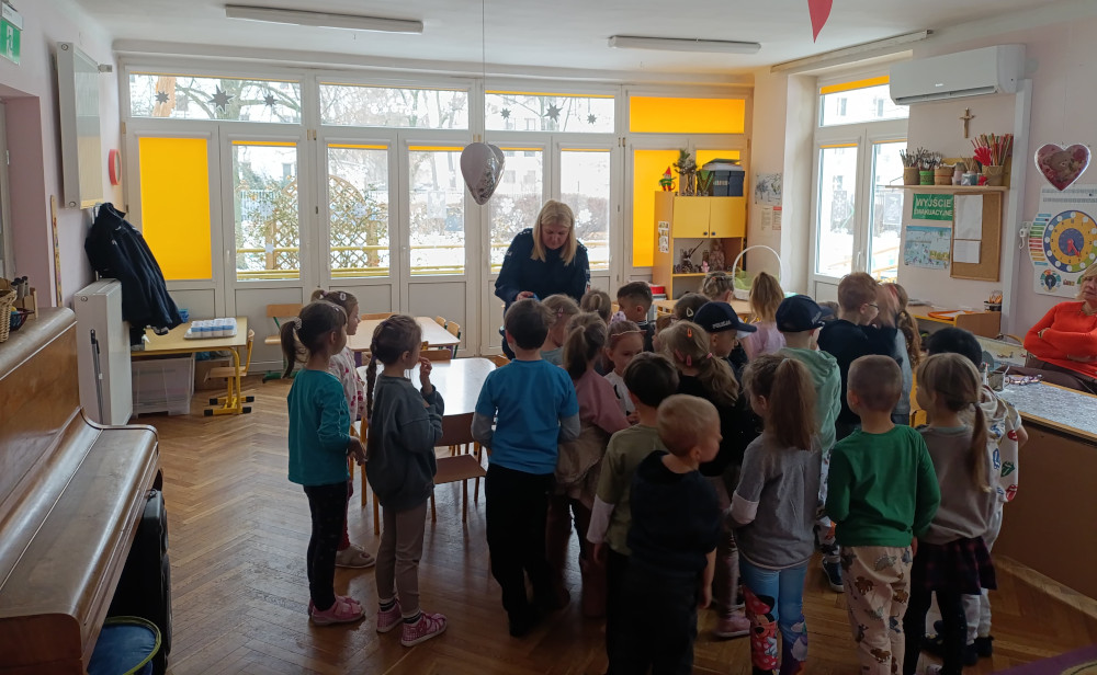 Policjantki z Zespołu Profilaktyki Społecznej starają się docierać z edukacją dotyczącą bezpieczeństwa już do najmłodszych odbiorców. Są nimi między innymi przedszkolaki.