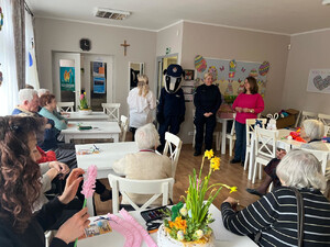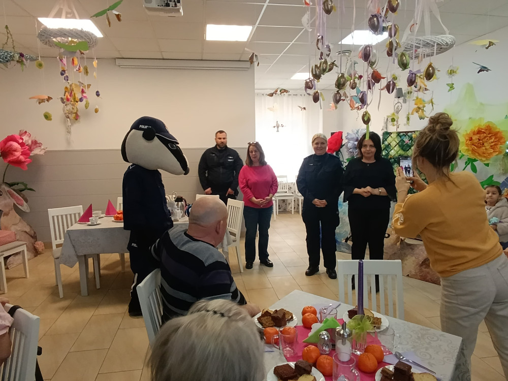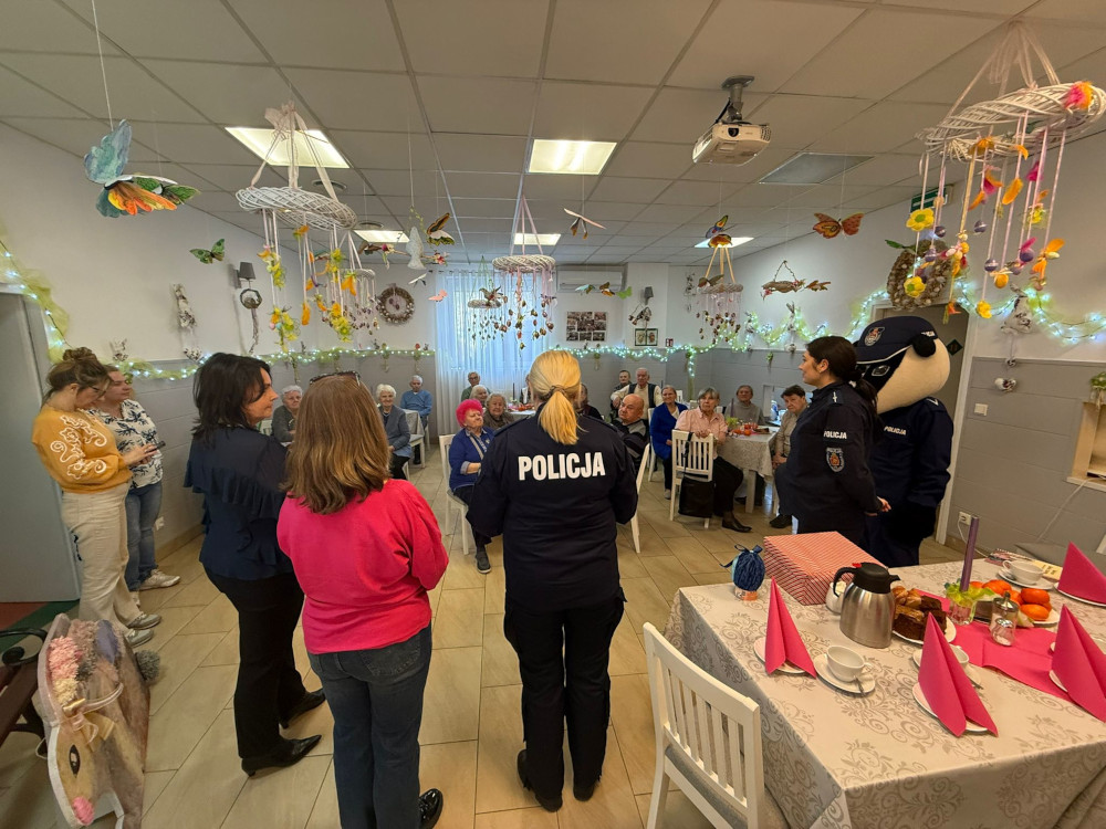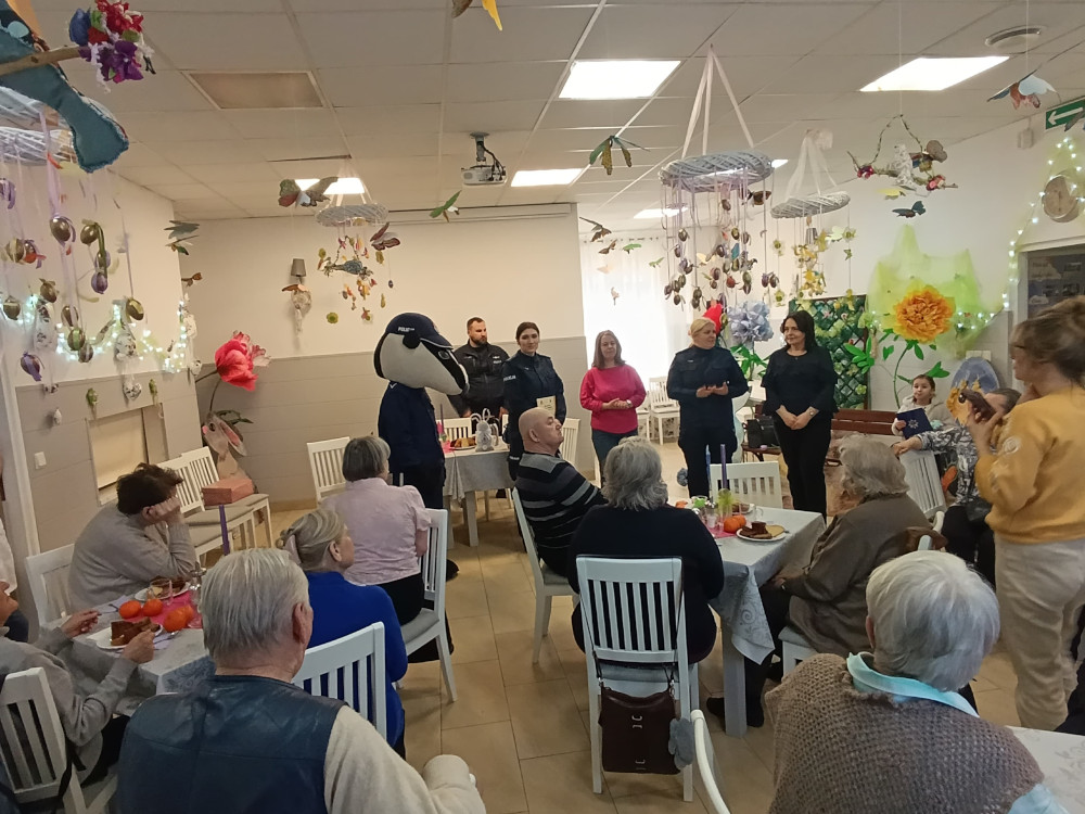 Policjantki zajmujące się profilaktyką społeczną i dzielnicowi w tym przedświątecznym czasie odwiedzili seniorów w Dziennych Domach Pomocy Społecznej, przy ulicy Paca i Zwycięzców. Towarzyszyła im kierowniczka delegatury Stołecznego Centrum Bezpieczeństwa i policyjna maskotka-Borsuk. Były pogadanki na temat bezpieczeństwa w ramach akcji „Nie daj się zrobić w jajo”, ale też rozmowy i wzajemne życzenia.