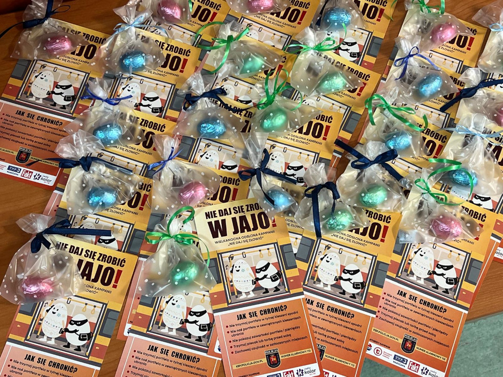 Nasze profilaktyczki wspólnie z dzielnicowymi przygotowali dla seniorów fantastyczne upominki. Wyposażyli ich w ulotki akcji „Nie daj się zrobić w jajo”. Dzięki temu seniorzy uzyskali dostęp do informacji na temat zagrożeń z jakimi można się zetknąć w gorączce przedświątecznych przygotowań i jednocześnie poznali skuteczne sposoby radzenia sobie z nimi. Do każdej ulotki dołączony był słodki prezent.