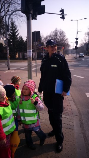 Podczas spotkania były również zajęcia praktyczne, dzieci pod kierunkiem i opieką dzielnicowej uczyły się prawidłowego przechodzenia przez jezdnię. Na zakończenia każdy przedszkolak mógł na pamiątkę otrzymać swoją odbitkę linii papilarnych.