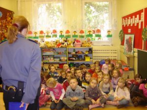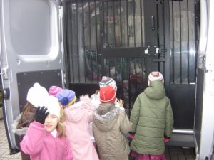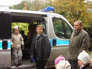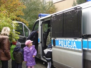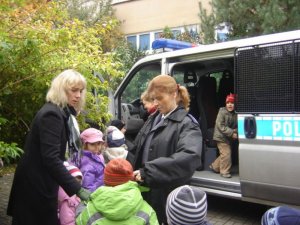 Wszystkie przedszkolaki zostały nagrodzone za swoją doskonałą wiedzę. Mogły z bliska zobaczyć policyjny radiowóz oraz elementy wyposażenia funkcjonariuszy.