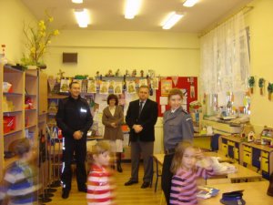 Naczelnik Leszek Niedźwiedź w imieniu pani Prezydent Warszawy na ręce Pani Dyrektor przedszkola przekazał rowerki, kaski, ochraniacze oraz wyposażenie niezbędne w miasteczku do nauki jazdy na jednośladach. Wszystko odbyło się w ramach opracowanej przez Biuro Bezpieczeństwa i Zarządzania Kryzysowego „Koncepcji poprawy bezpieczeństwa w ruchu drogowym na terenie m.st. Warszawy”. Zamierzeniem inicjatorów akcji jest wprowadzenie szkolenia edukacyjnego z wychowania komunikacyjnego wśród starszych przedszkolaków. Dzieci niezwykle cieszyły się z rowerków i już nie mogły się doczekać, kiedy będą mogły na nich jeździć po przedszkolnym ogródku.